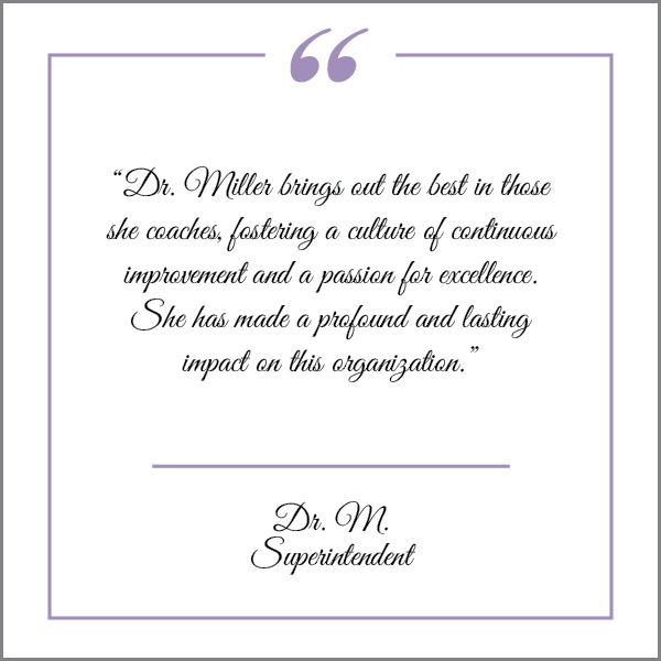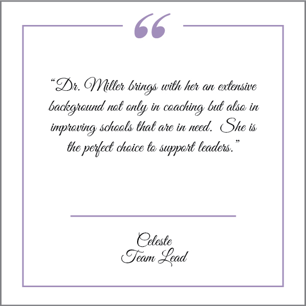 Dr. Miller has earned her Ed.D. in Education Leadership from Teachers College-Columbia University. Dr. Miller is a Professional Certified Coach with the International Coaching Federation (PCC-ICF), Certified Executive Coach (CEC), earning her certification via the Center for Executive Coaching, and a Board Certified Coach (BCC) via the Center for Credentialing & Education, Inc.